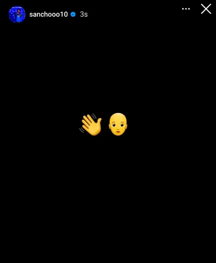 Jadon Sancho, who recently joined Chelsea on loan after a rocky relationship with Ten Hag, shared a telling Instagram story. He posted a black screen with a waving hand emoji and a blank-faced emoji, hinting at a possible farewell or sense of closure.